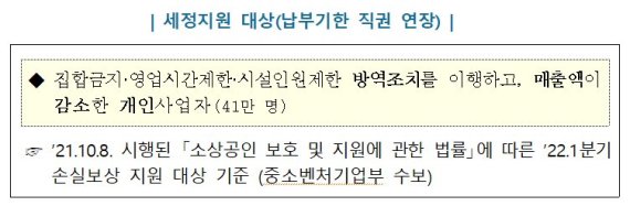 [파이낸셜뉴스] 코로나19 방역조치로 매출이 감소한 개인사업자의 부가가치세 납부기한이 2개월 연장된다. 대상은 코로나 확산 당시 집합 금지·영업 시간 제한·시설 인원 제한 방역 조치를 이행하고 매출액이 감소한 사업자 41만명이다. 다만 납부기한은 연장돼도 신고는 오는 25일까지 마쳐야 한다.