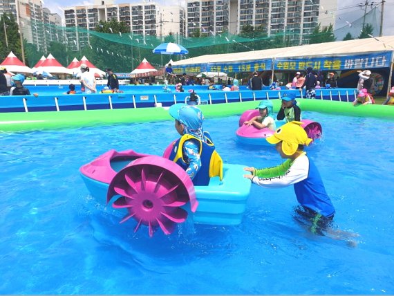 물놀이장은 약 300명까지 이용할 수 있도록 대형풀 1개, 중형풀 2개가 설치됐다. 아이들을 위한 대형 워터슬라이드도 갖췄다.