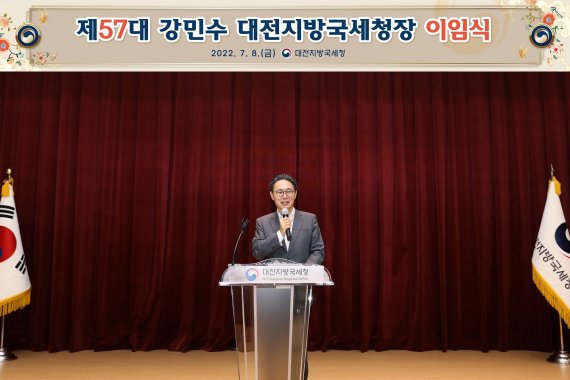 [대전=뉴시스]김도현 기자 = 강민수 대전지방국세청장은 8일 지방청 국장과 관내 서장을 비롯한 직원들이 참석한 가운데 이임식을 진행했다.