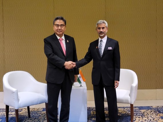 외교부에 따르면 박진 외교부 장관은 8일 발리에서 자이샨카르 인도 외교장관과 만나 "2023년이 우리나라와 인도의 외교관계 수립 50주년을 기념하는 뜻 깊은 해"라며 "이를 계기로 양국 간 국방 및 방산, 우주 분야 등 다방면에 걸친 교류와 협력이 한층 더 확대·강화되길 희망한다"고 밝혔다.