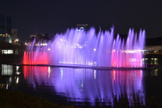동백호수공원의 상징인 음악분수는 평일에는 2회(오후 7시 30분, 오후 8시 30분), 주말에는 4회(오후1시, 오후 4시, 오후 7시30분, 오후 8시30분) 30분씩 가동된다.