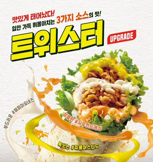 이번에 업그레이드된 트위스터는 톡 쏘는 피클머스터드와 상큼한 사우전아일랜드, 부드러운 페퍼마요네즈 총 3가지 소스를 사용해 맛을 더욱 다채롭게 나타내는 것이 특징이다.