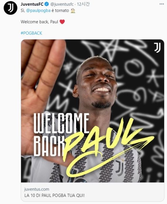 유벤투스는 11일(현지시간) 구단 홈페이지를 통해 "포그바가 다시 돌아왔다. 2026년 6월 30일까지 계약했다"고 발표했다.