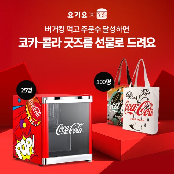 버거킹은 매주 추첨을 통해 코카콜라 미니냉장고를 25명에게, 코카-콜라 에코백을 100명에게 각각 증정한다. 이 이벤트는 요기요에 입점된 전국 버거킹 매장에서 주문하면 참여 가능하다.