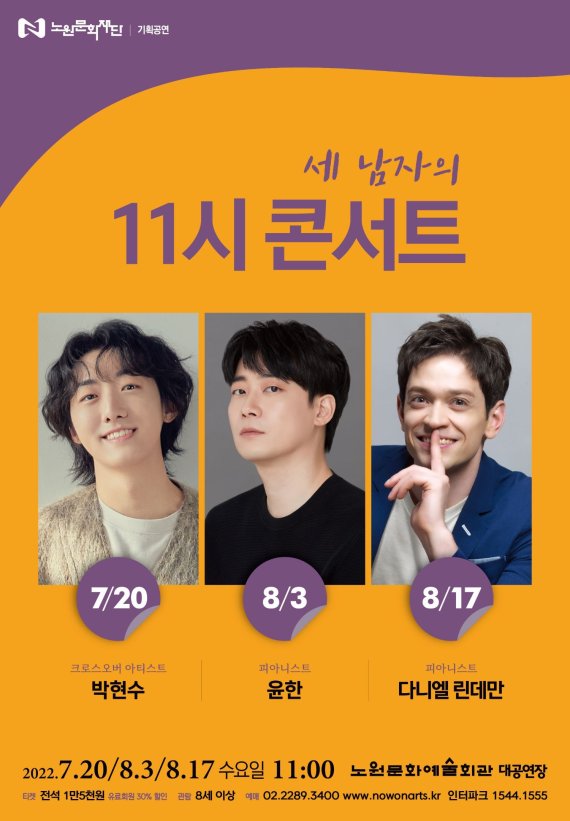콘서트의 제목은 '세 남자의 11시 콘서트'이다. 20일, 8월3일, 8월17일 오전 11시, 노원문화예술회관 대공연장에서 70분 동안 진행되는 이번 공연의 주인공은 무대뿐 아니라 방송에서도 활발히 활동하는 세 아티스트들이다.