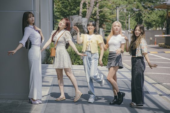 사진에서 WSG워너비의 세 유닛 가야G(이보람, 소연, HYNN-박혜원, 정지소), 4FIRE(나비, SOLE-쏠, 엄지윤, 권진아), 오아시소(윤은혜, 코타, 박진주, 조현아)는 3색 케미를 뽐내며 포즈를 취하고 있다.