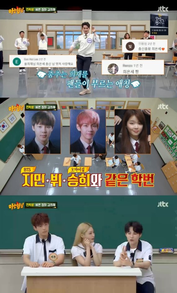 16일 오후 방송된 JTBC '아는형님'에는 가수 세븐과 청하, 김희재가 전학생으로 출연했다.