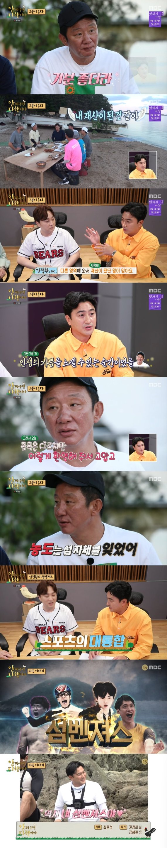 이를 지켜보던 전 축구선수 안정환도 입을 열었다. "허재 형님도 저도 한 종목에만 있지 않았냐. 다른 영역에 와서 다른 종목이나 방송하는 분들을 만난 게 재산이 됐다는 말이 맞다. 사람을 얻었다"라면서 "이번 일이 굉장히 인생의 기쁨을 느낄 수 있는 순간이었을 것"이라고 공감했다.