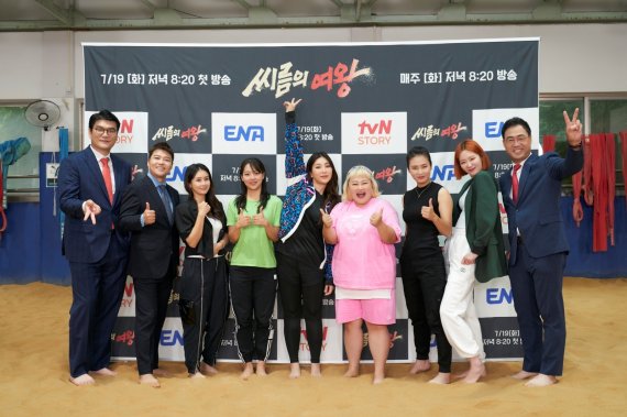 19일 오후 tvN STORY·ENA채널 새 예능 '씨름의 여왕' 제작발표회가 온라인으로 진행됐다. 이 자리에는 연출을 맡은 전성호 PD와 선수단 감독인 이만기와 이태현, 선수 최정윤, 홍윤화, 김새롬, 자이언트핑크, 김보름, 박은하 등이 참석해 프로그램에 대한 다양한 이야기를 들려줬다.