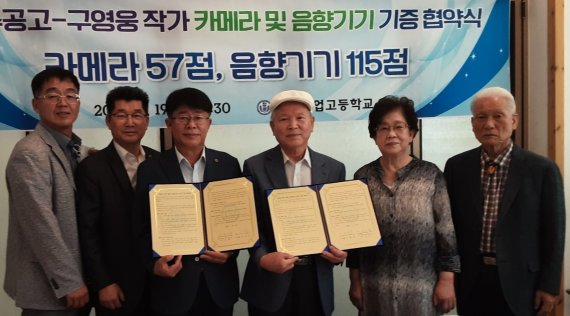 (청주=뉴스1) 이성기 기자 = 충북 청주공업고등학교(교장 김수태)는 구영웅 사진작가가 카메라와 음향기기 172점을 19일 학교에 기탁했다고 밝혔다.