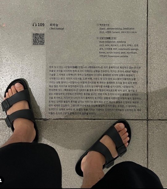 유아인은 작품 '백좌용비석' '강철이(깡철)' 앞에 서서 자신의 발 사진까지 담으며 친밀감도 함께 드러내고 있는 것으로 보인다.