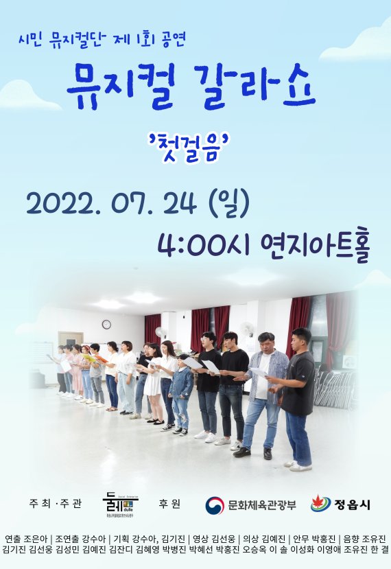 (정읍=뉴스1) 박제철 기자 = 전북 정읍시 문화특화지역 조성사업단을 운영하는 사회적 기업 둘레의 ‘시민 뮤지컬단’ 공연이 이달 24일 오후 4시 연지아트홀에서 막을 올린다.