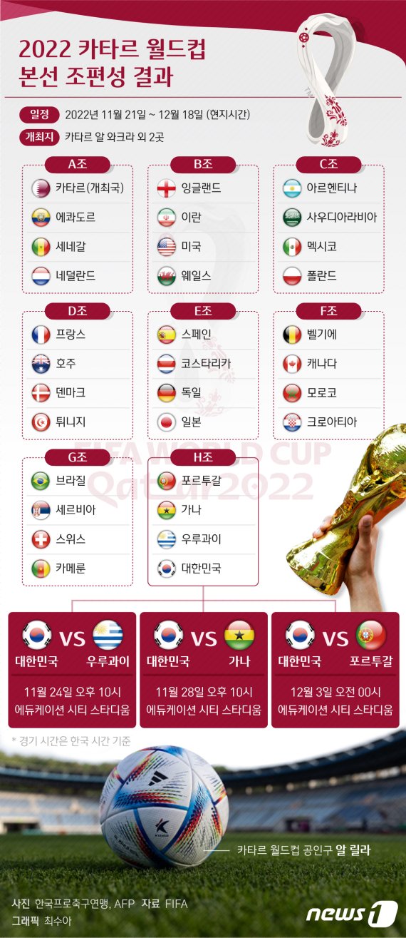 한국은 우루과이, 가나, 포르투갈과 함께 H조다.