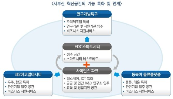 보고서에 따르면 부산에는 혁신도시를 포함해 연구개발특구, 지방과학연구단지 등 혁신 공간이 조성돼 있지만 기능적 연계성과 공간적 연결성이 부족하다.