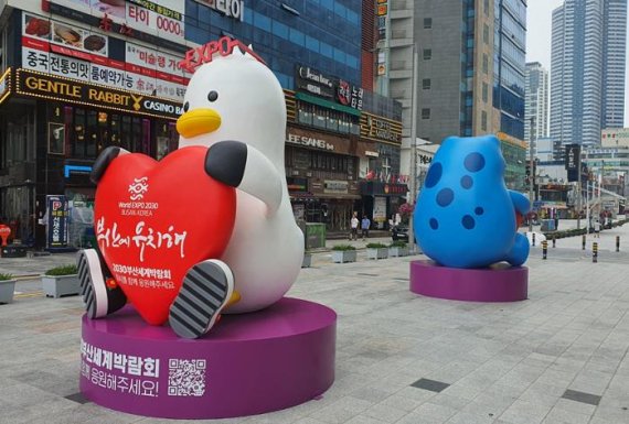 [부산=뉴시스]백재현 기자 = 부산시는 여름 휴가철을 맞아 하이트진로와 함께 해운대 구남로에 2030부산세계박람회 유치 응원 포토존을 마련했다고 26일 밝혔다.