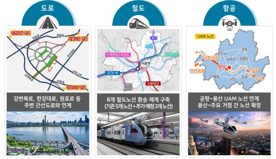 용산역의 철도 허브 기능도 강화된다. 철도노선은 현재 5개 노선(경부선, 호남선, 1호선, 4호선, 경의중앙선)에 향후 3개 노선(GTX-B, 수색-광명 고속철도, 신분당선)이 추가돼 총 8개 철도노선 환승체계가 구축된다.