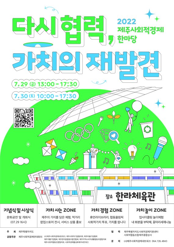 이 밖에 29일에는 홍조밴드·제주빌레앙상블의 공연과 사회적경제 협동 올림픽, 30일에는 행복한 밴드의 공연과 휴먼 라이브러리 토크 콘서트 등도 예정돼 있다.