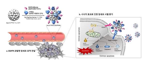 UNIST에 따르면 생명과학과 김은희·강세병 교수 연구팀은 세포 사멸을 유도하는 '트레일'(TRAIL) 단백질의 생체 내 효능을 획기적으로 높인 단백질 나노 복합체를 개발했다.