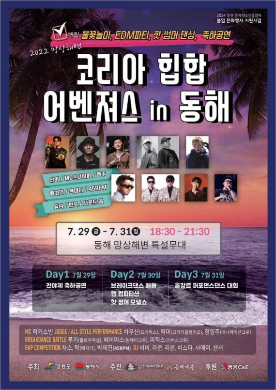 먼저 29~31일 동해 망상해변 특설무대에서 '2022 망상해변 코리아 힙합 어벤져스 in 동해'가 개최된다.