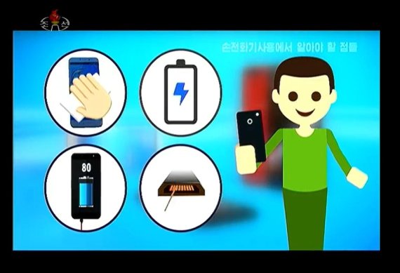 조선중앙TV는 26일 자 보도에서 사회문화상식으로 '손전화기 사용에서 알아야 할 점들'을 소개했다. 방송에서는 스마트폰을 청소하는 방법과 충전 방법에 대해 설명했다.