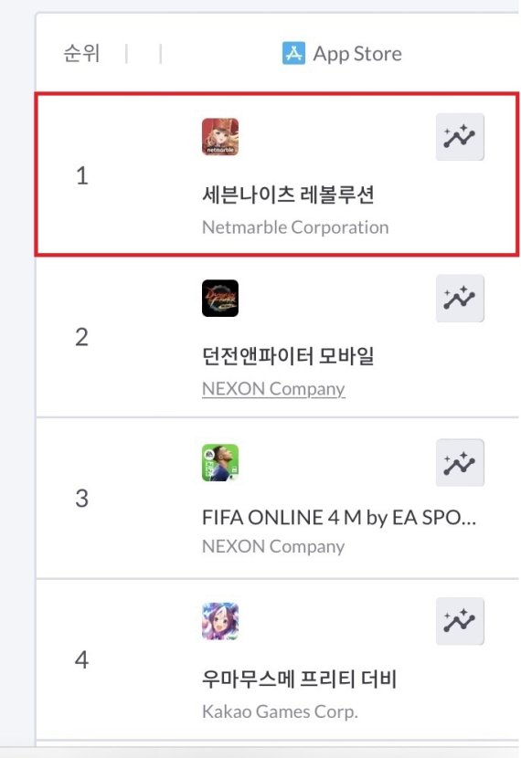 (서울=뉴스1) 김근욱 기자 = 넷마블은 올해 최대 기대작 '세븐나이츠 레볼루션'(세나레볼루션)이 애플 앱스토어 게임 매출 순위 1위에 올랐다고 29일 밝혔다.