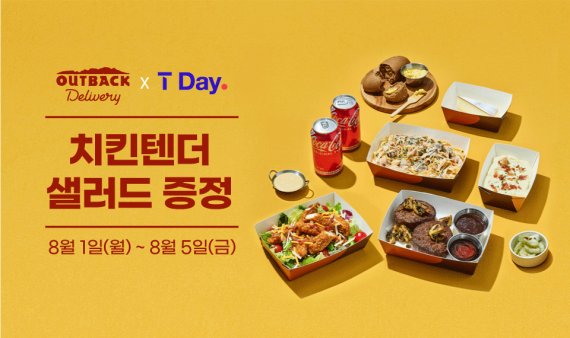 (서울=뉴스1) 이주현 기자 = 아웃백 스테이크하우스가 5일까지 SKT T멤버십 가입 회원을 대상으로 '치킨텐더 샐러드' 본품을 무료로 증정하는 쿠폰을 제공하는 SKT T-Day 프로모션을 진행한고 2일 밝혔다.