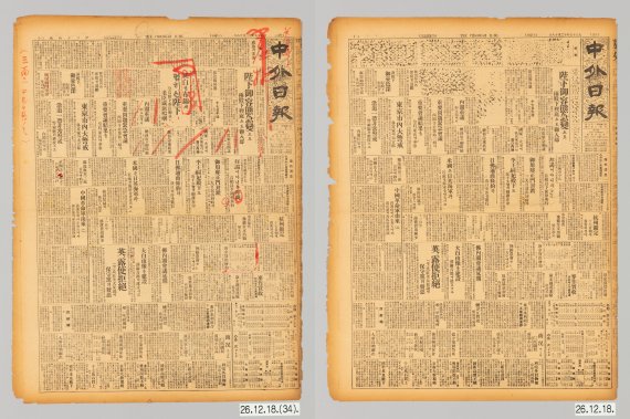 광복 77주년을 앞두고 열리는 이번 전시를 통해 일제의 언론 검열 흔적이 담긴 중외일보 16개호(27개 기사)가 처음 공개된다.