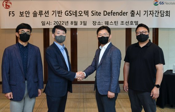 GS네오텍과 F5코리아는 3일 서울 웨스틴 조선 호텔에서 기자간담회를 열고 'GS네오텍 사이트 디펜더'를 국내외 고객사에 제공한다고 밝혔다.