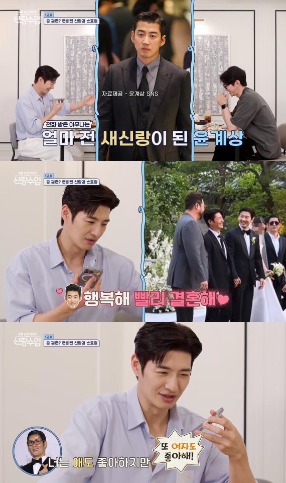 이날 '신랑수업' 새 멤버로 스튜디오에 첫 등장한 손호영은 "마음이 조급해져서 찾아왔다"며 "연상도 괜찮다. 자리 잡은 누나도 좋다"고 인사했다. 잠시 후 손호영은 그룹 'god'의 또 다른 '미혼남'인 데니안과 만나 레스토랑에서 '남남 데이트'를 하는 일상을 공개했다.