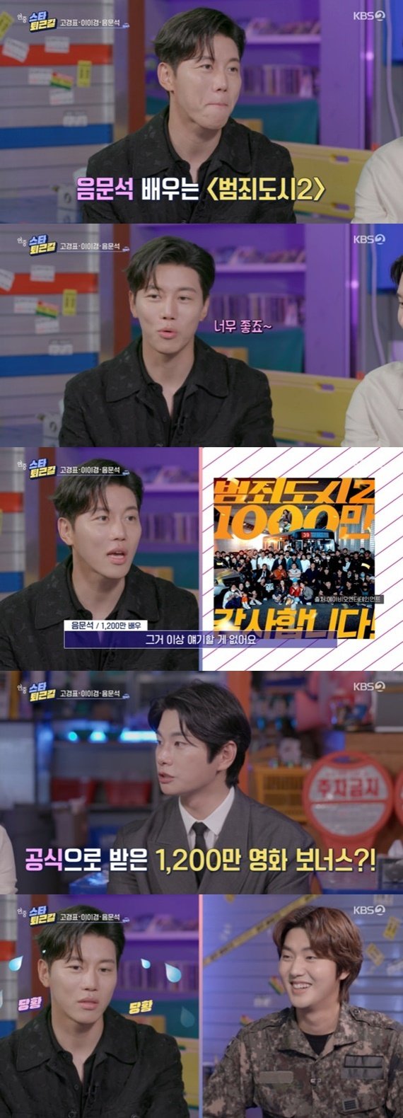 이어 이이경이 음문석이 '범죄도시2'로 공식 보너스를 받았다고 밝히자 김종현 아나운서가 보너스 액수를 물으며 시선을 모았다.