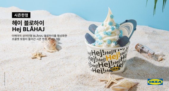 헤이 블로하이는 이케아의 인기 제품인 '블로하이(BLAHAJ)' 상어 인형을 아이스크림으로 형상화한 시즌 한정 메뉴다. 무더운 날씨에도 시원한 바다 분위기를 한껏 느낄 수 있도록 기획됐다.