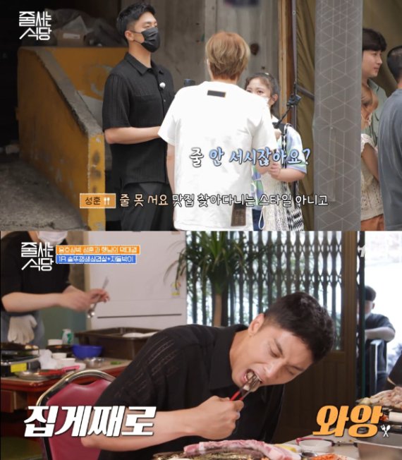 이어 박나래는 "워낙 친해 이 분성격을 안다. 줄을 안 서지 않느냐"고 물었다. 성훈은 "맛집 찾아다니는 스타일이 아니다. 대기인원이 1~2명만 있어도 옆집으로 간다"고 말했다. 박나래 또한 "성훈이 메뉴 고르는 가장 큰 기준은 당장 먹을 수 있는 것. 그러니까 내가 줄 이야기를 안했다"고 성훈의 불편함에 공감했다.
