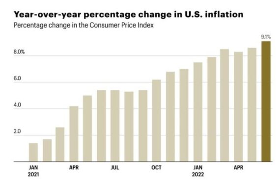 미국의 CPI가 9.1%로 정점을 찍고 하락할 것이란 얘기다.