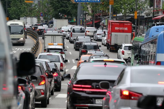 (서울=뉴스1) 양새롬 기자 = 지난 8일부터 이어진 중부지방 집중호우로 인해 10일 서울 퇴근길도 일부 정체를 빚고 있다.