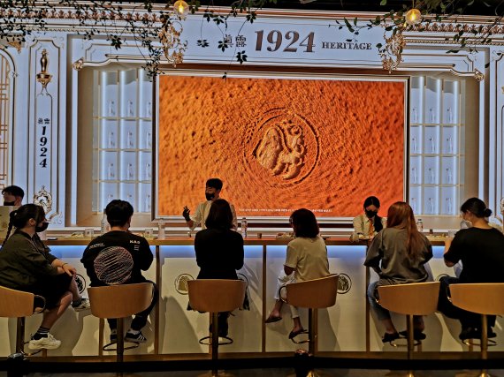 팝업스토어의 시음장은 고급바를 연상시켰다. 바텐더들은 "첫잔은 샷으로, 두번째는 얼음에 타서 마셔보길" 제안하며 "3번의 증류 과정은 술의 도수를 높이는 것도 있지만, 향미를 극대화하기 위한 측면도 있다"고 설명했다.