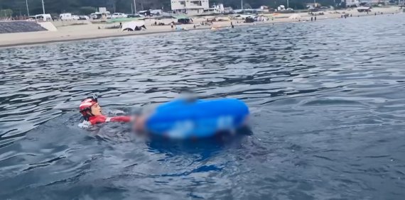 [포항=뉴시스] 김정화 기자 = 튜브를 착용한 채 물놀이하다 해안에서 약 200m 떨어지며 표류하게 된 피서객이 해경에 구조됐다.