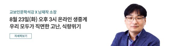 교보문고와 대산문화재단, 교보생명은 2022년 두 번째 교보인문학석강으로 인류가 직면한 기후위기를 살펴보고 그에 따른 식량문제의 대비책을 찾기 위해 남재작 한국정밀농업연구소장을 초청하여 ‘우리 모두가 직면한 고난, 식량위기’를 개최한다고 16일 밝혔다.
