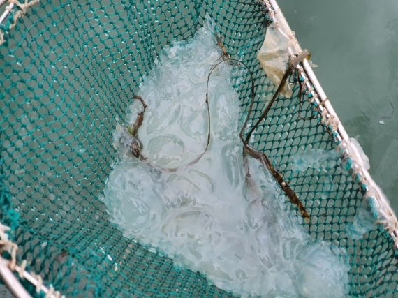 애써 끌어올린 그물 안에 기대한 물고기 대신 해파리만 가득한 일이 반복되자 아예 조업을 포기한 어민도 있는 것으로 전해졌다.