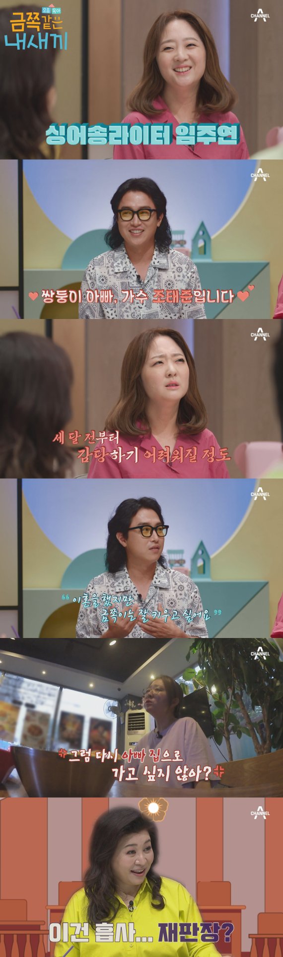 이어 이혼한 전남편이자 가수 조태준이 스튜디오에 등장해 모두를 깜짝 놀라게 한다. "(임주연과) 친구처럼 지낸다, 이혼 후 더 친해졌다"고 말한 아빠는 아이들을 잘 키우고 싶다는 공동 목표를 위해 나왔다며 출연을 결심하게 된 이유를 설명했다. 오롯이 자매를 위해 용기를 낸 두 사람의 모습은 출연자들의 감탄을 자아냈다.