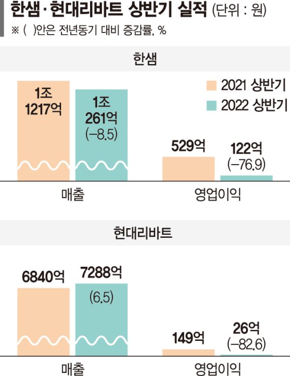 업계 2위인 현대리바트의 실적도 크게 다르지 않다. 현대리바트의 매출액은 7288억원으로 6.5% 증가했지만 영업이익은 26억원에 불과해 지난해 같은 기간 대비 82.6% 줄어들었다. 무엇보다 현대리바트의 2·4분기 2억8600만원의 영업손실을 보며 적자로 돌아섰다.