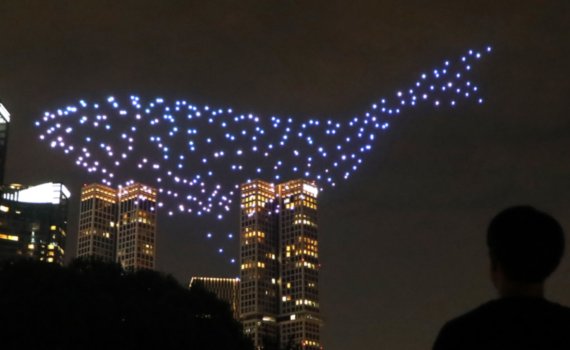 그린피스가 드론 300대를 이용해 해양 멸종위기 동물인 고래와 바다거북 등 동물이 헤엄치는 모습과 바다를 지키기 위한 메시지를 표현했다.