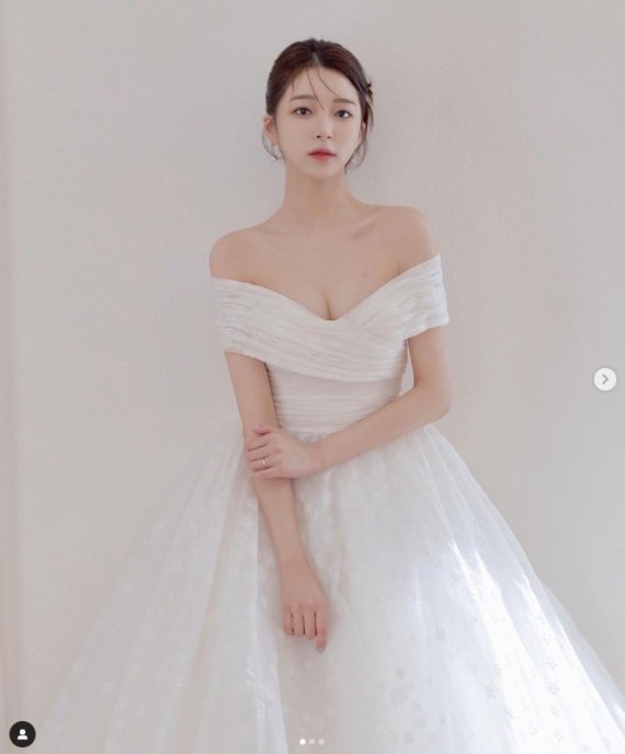 함께 공개된 웨딩 화보에서 이윤지 아나운서는 순백의 웨딩 드레스를 입고 단아한 미모를 드러냈다.