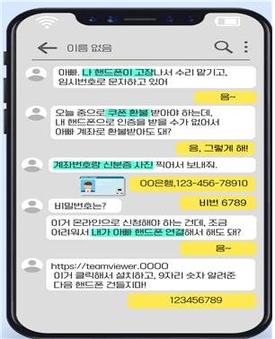충북경찰청 관계자는 "휴대폰이나 SNS채팅으로 자녀를 사칭하는 문자메시지를 받을 경우 신분증과 신용카드 사진을 전송하지 말아야 한다"면서 "금전을 송금했다면 즉시 112에 신고하고 해당은행에 지급정지를 요청해달라"고 당부했다.