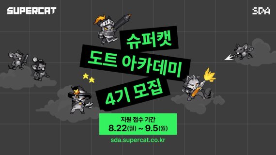 [서울=뉴시스]최은수 기자 = 슈퍼캣은 미래의 도트 아티스트 양성을 위한 채용 연계형 교육 프로그램 ‘슈퍼캣 도트 아카데미(SDA)’의 4기 수강생을 모집한다고 23일 밝혔다.