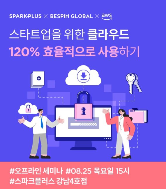 베스핀글로벌은 공유 오피스 전문 브랜드 스파크플러스 입주사를 대상으로 한 '스타트업을 위한 클라우드 120% 효율적으로 사용하기' 오프라인 세미나를 오는 25일 개최한다.