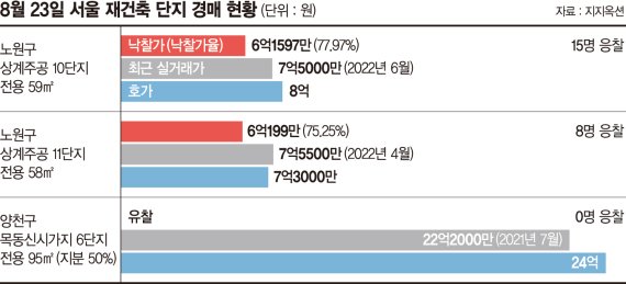 23일 법원경매 전문업체 지지옥션에 따르면 이날 서울 북부지방법원 경매5계에서 노원구 상계주공 10단지 전용 59㎡ 물건에 15명이 경합했다. 노원구는 상대적으로 저가 아파트 단지가 몰린 곳으로 두자릿수 응찰자는 지난 4월 이후 4개월 만이다.