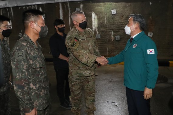 [서울=뉴시스] 박대로 기자 = 한미 연합 군사 훈련인 을지 자유의 방패(UFS) 연습에서 전시작전통제권 전환을 위한 미래연합사령부 완전운용능력(FOC) 평가가 이뤄지는 가운데 폴 라캐머라 주한미군 사령관이 미래연합사 부사령관 명패를 치우라고 지시한 것으로 나타났다. 라캐머라 사령관이 전작권 전환에 대한 불만을 우회적으로 표현한 것이 아니냐는 관측이 나온다.