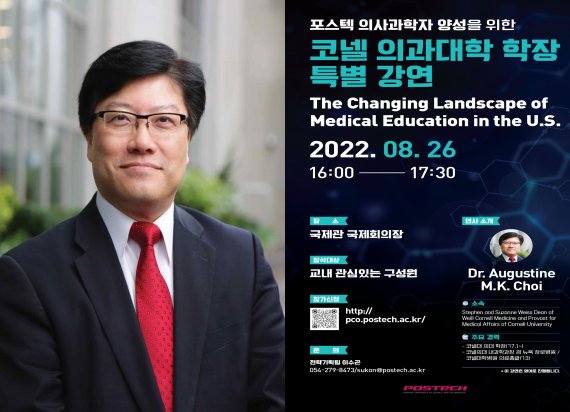 (포항=뉴스1) 최창호 기자 = 미국 코넬대 의대 어거스틴 최 학장이 26일 포스텍에서 강연한다.