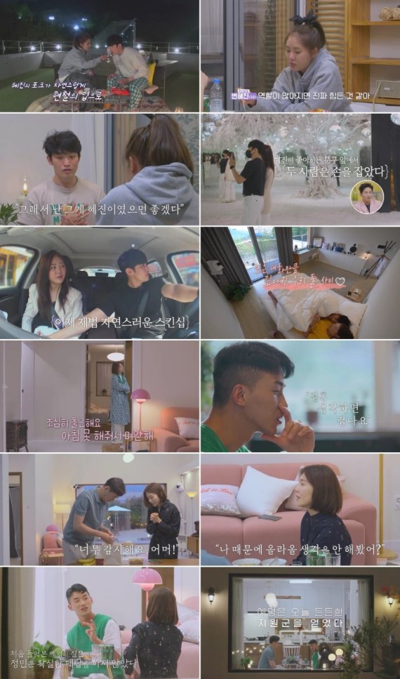먼저 유현철 변혜진 커플은 동거 둘째 날 밤 루프탑에서 오붓한 술자리를 가졌다. 꽁냥꽁냥한 분위기 속 유현철은 "오늘 내 일상에 들어온 기분이 어땠어?"라고 조심스럽게 물었다.