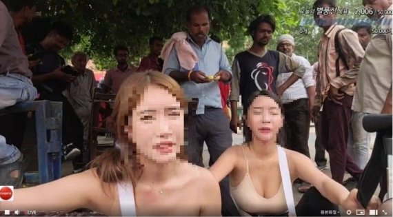 [서울=뉴시스]김수연 인턴 기자 = 아프리카TV 여성 BJ(인터넷방송 진행자)들이 인도 여행 중 노출이 심한 의상을 입고 현지 남성들 앞에서 춤을 춰 논란이 되고 있다.